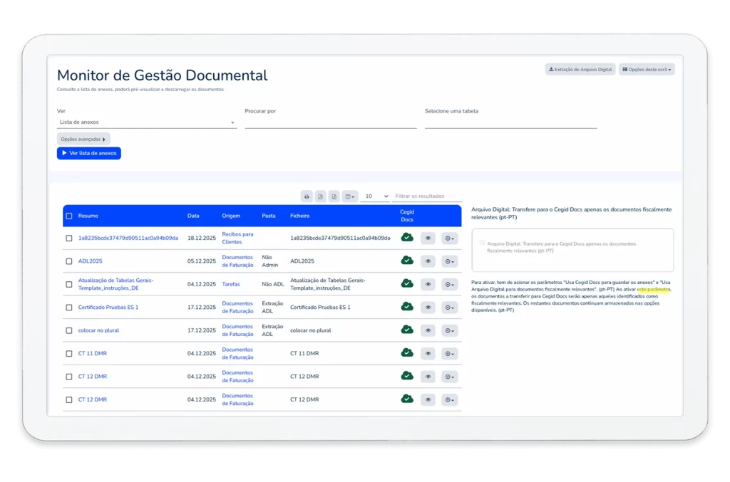 O Cegid PHC Evolution tem um arquivo digital legal que centraliza e protege toda a documentação da empresa, garantindo conformidade legal, organização e acesso imediato à informação.